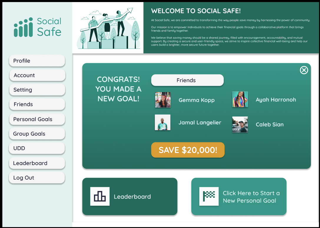 To empower individuals to achieve their financial goals through a collaborative platform that brings friends and family together. We believe that saving money should be a shared journey, filled with encouragement, accountability, and mutual support. By creating a secure and user-friendly space, we strive to inspire collective financial well-being and help out users build a brighter, more secure future together.